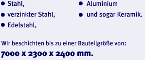 Wir sind ein Spezialbetrieb für Metallverarbeitung und Pulverbeschichtung im Burgenlandkreis. Durch die Pulverbeschichtung können wir für Sie eine Vielzahl von Materialien veredeln: Nach Absprache bis zu 12 m möglich.